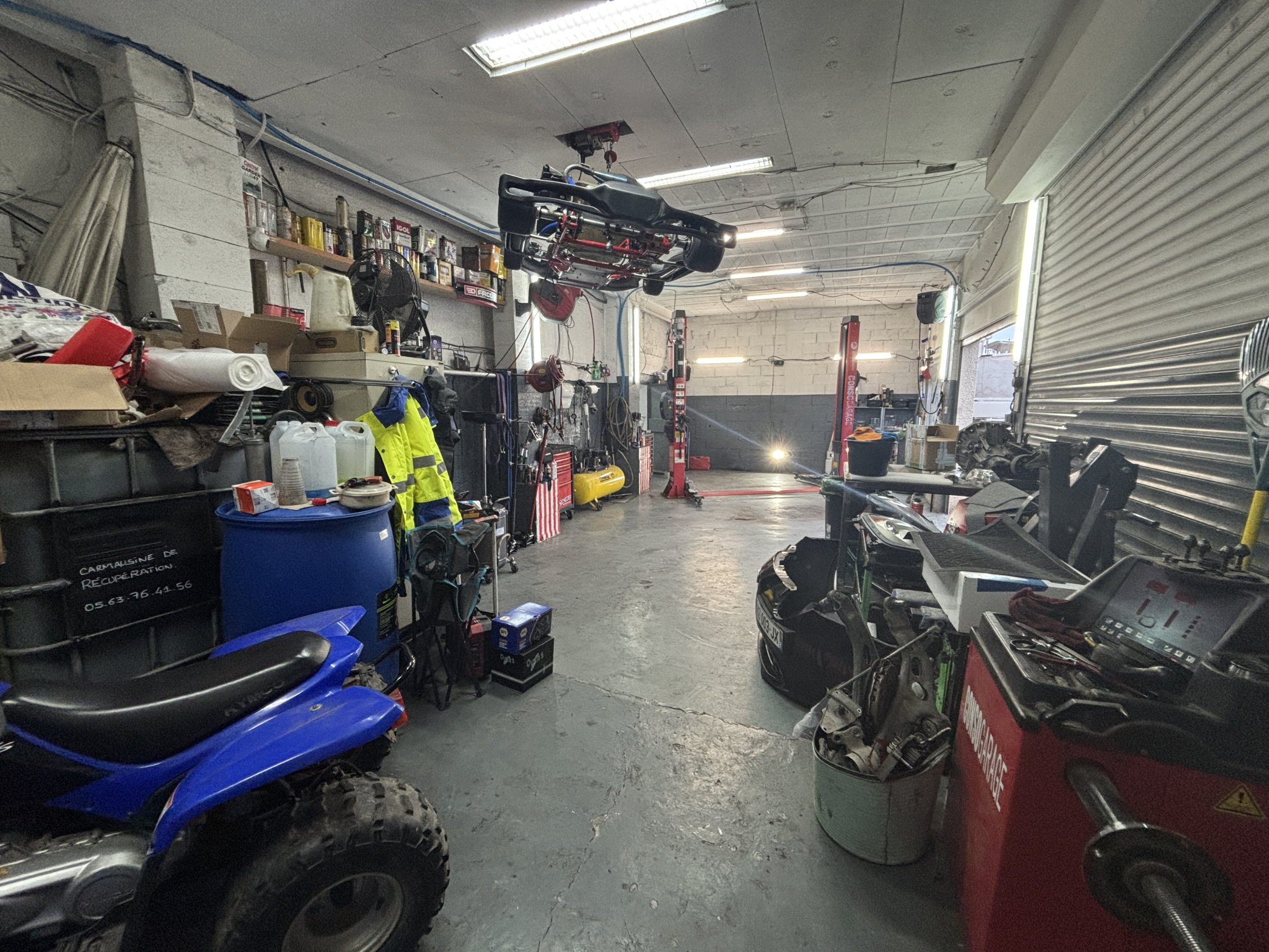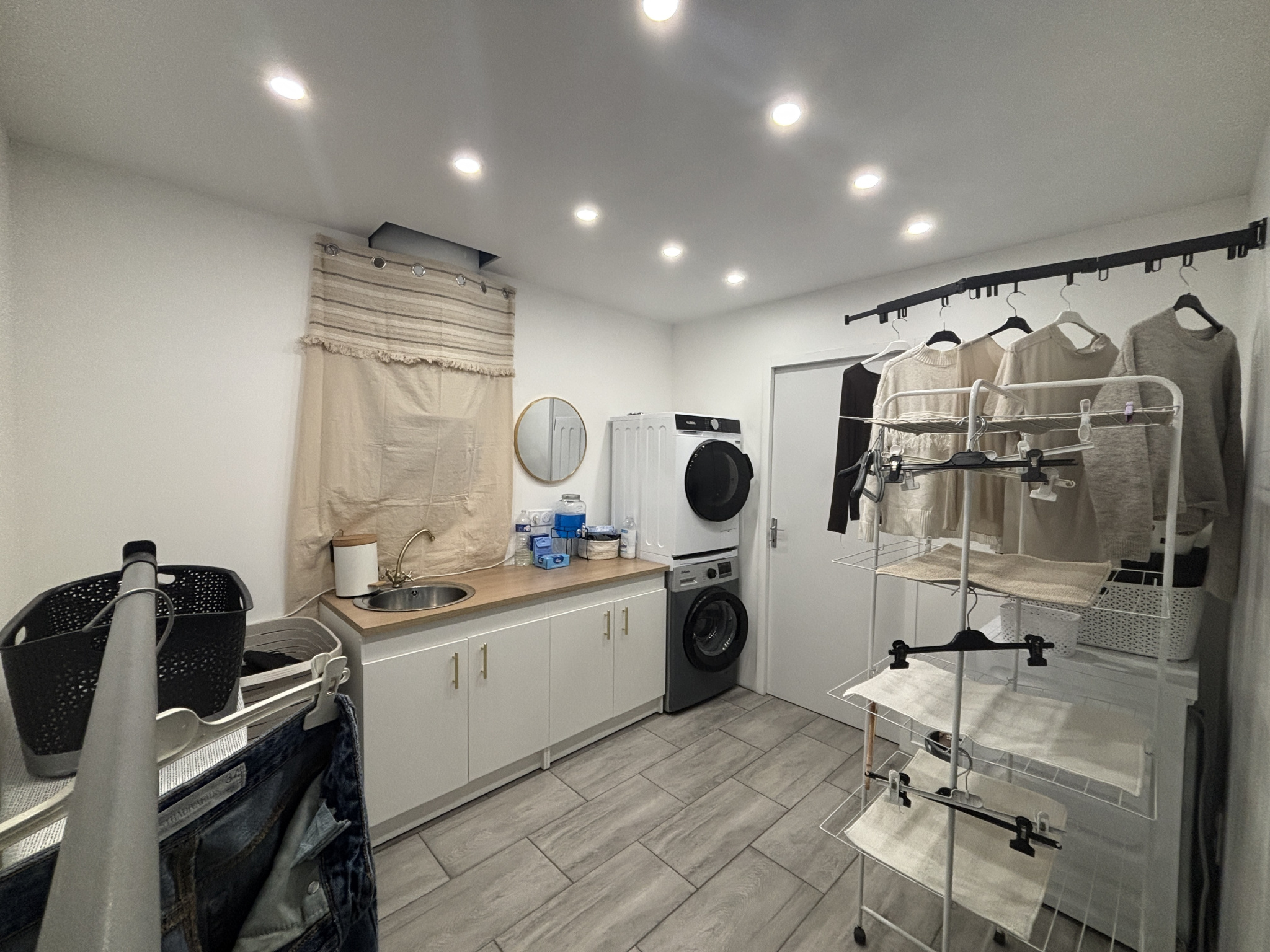 Au sous-sol, nous retrouvons un grand garage de 63 m2 avec une pièce attenante (WC et lavabo) et un accès direct à la maison.