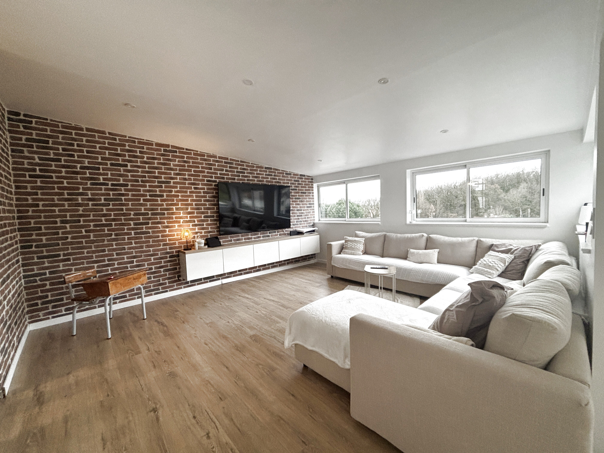 La maison comprend une cuisine équipée de 15 m2, un salon/séjour de 40 m2, 3 chambres ainsi qu’une pièce de 16 m2 aménageable, une buanderie et une véranda.